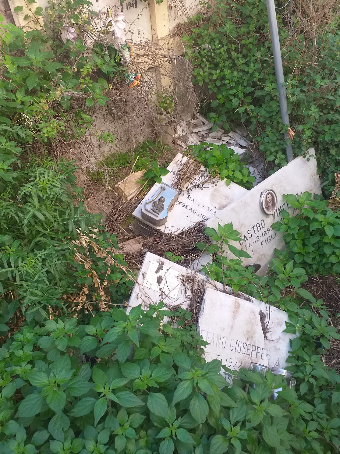 Le lapidi, rotte e ammassate a terra, testimoniano il totale abbandono e il disinteresse delle autorità competenti. Un luogo sacro ridotto a scenario di degrado, dove il rispetto per i defunti sembra un concetto completamente dimenticato.