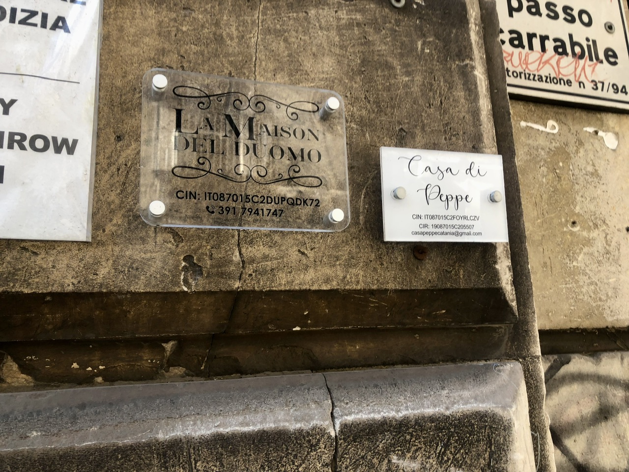È bastato recarci in via San Giuseppe al Duomo al civico 31 per confermare la presenza, attorno all'elegante portone, di ben tre targhette con i nomi delle strutture presenti, una con Cin, due con Cin e anche con il CIR (Codice Identificativo Regionale). Ma nulla riferito agli “Appartamenti al Duomo” che, in sintesi, non avendo ancora apposto la targhetta che ne riporti il nome, il codice Cin e un recapito telefonico o email, come detto sono da considerarsi non identificabili, quindi abusivi.