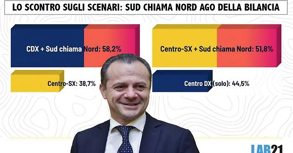 Il sondaggio, però, non prende in considerazione la corsa solitaria, così come nel 2022, del leader di Sud chiama Nord. Manca dunque il peso specifico di "Scateno" (primo dei perdenti alle ultime Regionali, con quasi il 24%) contro i due schieramenti tradizionali.