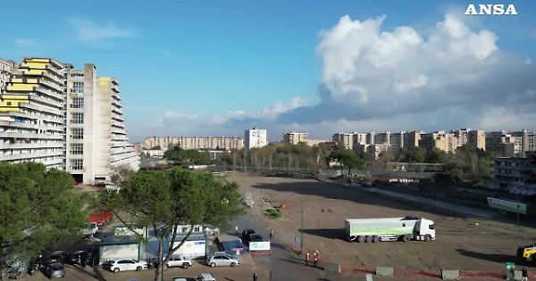 A Scampia al via la demolizione della Vela Rossa, il video dal drone