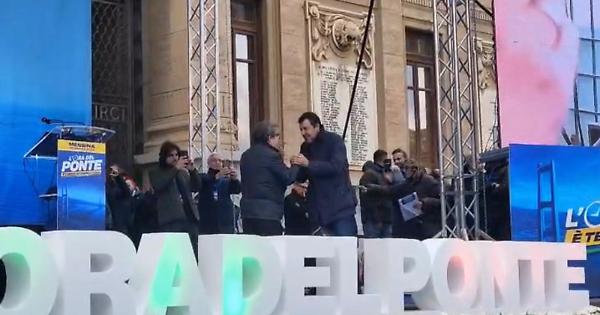 L'ex sindaco di Catania e attuale esponente del Partito democratico è l'unico esponente del centrosinistra che oggi è salito sul palco della manifestazione dei Sì Ponte a Messina. Una stretta di mano al ministro Matteo Salvini e un ringraziamento finale: «Grazie Matteo per quello che farai, saremo al tuo fianco».